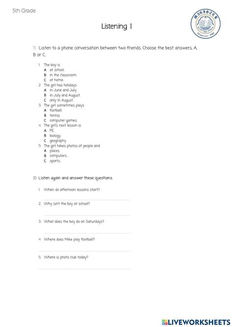 Download 5th grade listening test PDF